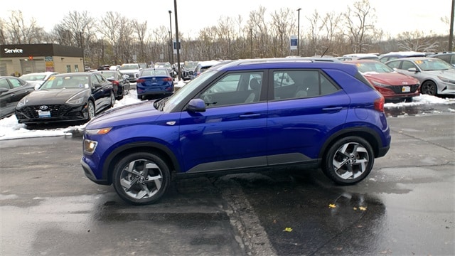 Certified. Intense Blue 2024 Hyundai Venue SEL FWD CVT I4 4-Wheel Disc Brakes, 6 Speakers, 6.052 Axle Ratio, 6.5J x 17" Alloy Wheels, ABS brakes, Air Conditioning, Alloy wheels, AM/FM radio, Apple CarPlay & Android Auto, Auto High-beam Headlights, Automatic temperature control, Brake assist, Bumpers: body-color, Cargo Tray, Cloth Seat Trim, Delay-off headlights, Driver door bin, Driver vanity mirror, Dual front impact airbags, Dual front side impact airbags, Electronic Stability Control, Front anti-roll bar, Front Bucket Seats, Front Center Armrest, Front reading lights, Front wheel independent suspension, Fully automatic headlights, Illuminated entry, Leather Shift Knob, Leather steering wheel, Low tire pressure warning, Occupant sensing airbag, Option Group 01, Outside temperature display, Overhead airbag, Overhead console, Panic alarm, Passenger door bin, Passenger vanity mirror, Power door mirrors, Power moonroof, Power steering, Power windows, Radio: AM/FM/HD Display Audio, Rear Seat Cup Holder, Rear window defroster, Rear window wiper, Remote keyless entry, Roof rack: rails only, Security system, Speed control, Speed-sensing steering, Split folding rear seat, Spoiler, Steering wheel mounted audio controls, Tachometer, Telescoping steering wheel, Tilt steering wheel, Traction control, Trip computer, Variably intermittent wipers.