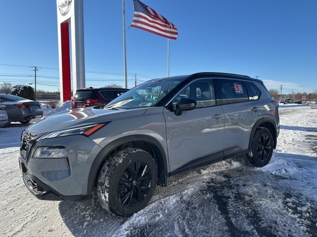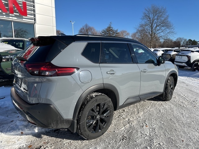 Certified. Boulder Gray Pearl/Super Black 2023 Nissan Rogue SV AWD CVT with Xtronic 1.5L I3 Turbocharged DOHC 12V LEV3-ULEV50 201hp **NON SMOKER**, **NEW BRAKES**, **NEW TIRES**, **RECENT OIL CHANGE**, **LOW MILEAGE**, AWD, Black High Gloss Exterior Mirror Caps, Heated Driver & Front Passenger Seats, Heated Leather Wrapped Steering Wheel, Leatherette Door Trim Inserts w/Stitch, Midnight Edition Package, Panoramic Moonroof, Power Liftgate, PRIMATEX Leatherette Seat Trim, Rear Door Sunshades, Rear Personal Lights, Security Alarm, Silver Painted Roof Rails, SV Premium B Package, TailorFit Leatherette Seat Trim, Wheels: 18" Gloss Black Painted Alloy.