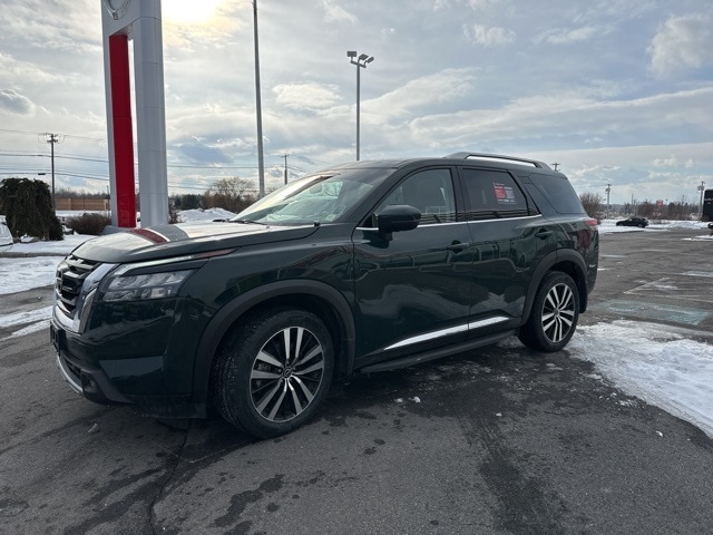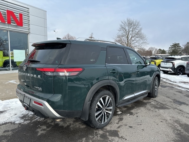 Certified. Green Pearl 2025 Nissan Pathfinder Platinum 4WD 9-Speed Automatic 3.5L V6 DOHC **NAVIGATION**, **NON SMOKER**, **RECENT OIL CHANGE**, **LOW MILEAGE**, 4WD, Cargo Area Protector, Cargo Net, Cargo Package, First Aid, Navigation system: NissanConnect with Navigation and Services.