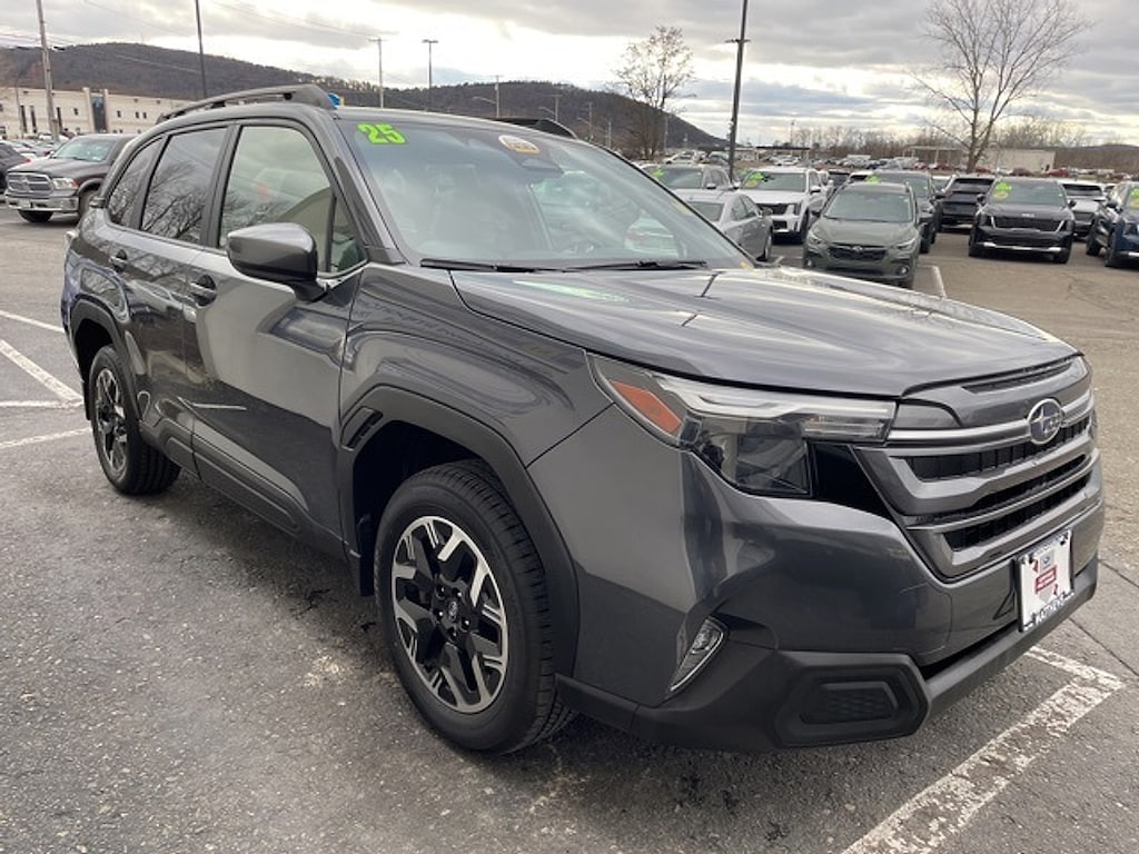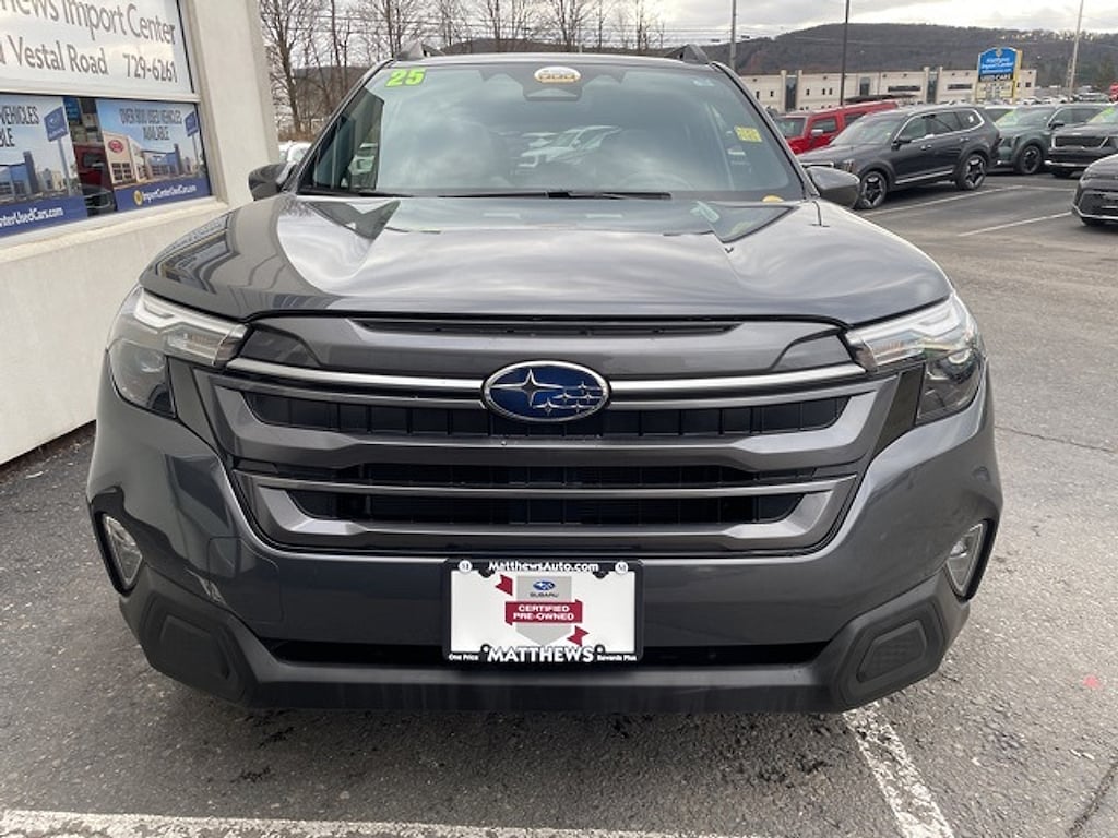 Matthews Import Center promises each customer a thorough and confident 120-point inspection on our used inventory guaranteeing a relaxing and peace-of-mind experience. We are located behind Lowes in Vestal NY. Or call us at (607) 729 - 6261Matthews Import Center3013 Old Vestal RoadVestal NY 13850. Certified. Magnetite Gray Metallic 2025 Subaru Premium Forester AWD Lineartronic CVT 2.5L 4-Cylinder DOHC 16VOdometer is 1147 miles below market average! 26/33 City/Highway MPGSubaru Certified Pre-Owned Details: * Transferable Warranty * Vehicle History * Powertrain Limited Warranty: 84 Month/100000 Mile (whichever comes first) from original in-service date * 152 Point Inspection * Warranty Deductible: $0 * Roadside Assistance * SiriusXM 3-Month trial subscription $500 Owner Loyalty coupon & 1 year trial subscription to STARLINK