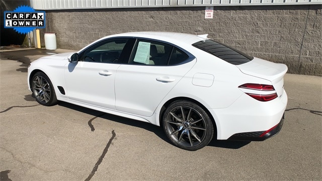 White 2023 Genesis G70 2.0T RWD 8-Speed Automatic with SHIFTRONIC I4 WOW- WHAT A CAR!, 6 Speakers, Heated door mirrors, Heated front seats, Heated Multi-Adjustable Front Bucket Seats, Leatherette Seating Surfaces, Navigation System, Power driver seat, Radio: AM/FM/SiriusXM/HD Audio System, Telescoping steering wheel.