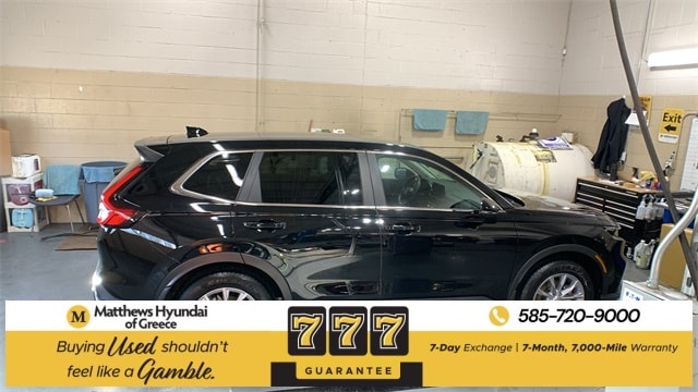 Crystal Black Pearl 2023 Honda CR-V EX-L AWD CVT 1.5L I4 DOHC 16V AWD, 4-Wheel Disc Brakes, 5.64 Axle Ratio, 8 Speakers, ABS brakes, Adaptive Cruise Control: Adaptive Cruise Control (ACC) with Low-Speed Follow, Air Conditioning, Alloy wheels, AM/FM radio: SiriusXM, Auto High-beam Headlights, Auto-dimming Rear-View mirror, Automatic temperature control, Brake assist, Bumpers: body-color, Compass, Delay-off headlights, Driver door bin, Driver vanity mirror, Dual front impact airbags, Dual front side impact airbags, Electronic Stability Control, Exterior Parking Camera Rear, Four wheel independent suspension, Front anti-roll bar, Front Bucket Seats, Front Center Armrest, Front dual zone A/C, Front reading lights, Fully automatic headlights, Heated door mirrors, Heated Front Bucket Seats, Heated front seats, Illuminated entry, Knee airbag, Leather Seat Trim, Leather Shift Knob, Leather steering wheel, Low tire pressure warning, Memory seat, Occupant sensing airbag, Outside temperature display, Overhead airbag, Overhead console, Panic alarm, Passenger door bin, Passenger vanity mirror, Power door mirrors, Power driver seat, Power Liftgate, Power moonroof, Power passenger seat, Power steering, Power windows, Radio data system, Radio: 320-Watt AM/FM/HD/SiriusXM Audio System, Rear anti-roll bar, Rear reading lights, Rear seat center armrest, Rear side impact airbag, Rear window defroster, Rear window wiper, Remote keyless entry, Security system, Speed control, Speed-sensing steering, Speed-Sensitive Wipers, Split folding rear seat, Spoiler, Steering wheel mounted audio controls, Tachometer, Telescoping steering wheel, Tilt steering wheel, Traction control, Trip computer, Turn signal indicator mirrors, Variably intermittent wipers, Wheels: 18" Sparkle Silver Metallic, Wireless Apple CarPlay/Wireless Android Auto.