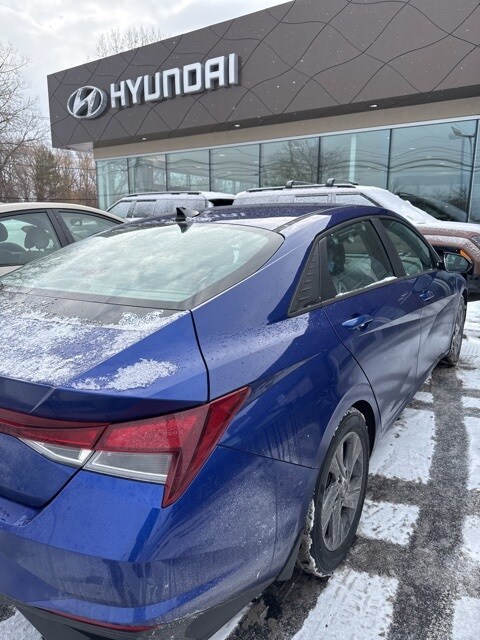 Intense Blue 2022 Hyundai Elantra SEL FWD CVT 2.0L 4-Cylinder DOHC 16V 16" x 6.5J Alloy Wheels, 4-Wheel Disc Brakes, 6 Speakers, ABS brakes, Air Conditioning, Alloy wheels, AM/FM radio: SiriusXM, Apple CarPlay & Android Auto, Auto High-beam Headlights, Automatic temperature control, Brake assist, Bumpers: body-color, Cargo Net, Carpeted Floor Mats, Cloth Seat Trim, Convenience Package, Delay-off headlights, Driver door bin, Driver vanity mirror, Dual front impact airbags, Dual front side impact airbags, Electronic Parking Brake, Electronic Stability Control, Emergency communication system: Blue Link Connected Car Service (3-year complimentary subscription), Exterior Parking Camera Rear, First Aid Kit, Forward Collision Avoidance Assist, Front anti-roll bar, Front Bucket Seats, Front Center Armrest, Front dual zone A/C, Front reading lights, Front wheel independent suspension, Full 10.25" LCD TFT Cluster, Fully automatic headlights, Heated Front Seats, Heated Outside Mirrors, Illuminated entry, Leather-Wrapped Steering Wheel, Low tire pressure warning, Mudguards, Occupant sensing airbag, Option Group 02, Outside temperature display, Overhead airbag, Overhead console, Panic alarm, Passenger door bin, Passenger vanity mirror, Power door mirrors, Power steering, Power windows, Radio: AM/FM/HD/SiriusXM Display Audio, Rear Bumper Applique, Rear window defroster, Remote keyless entry, Security system, Smart Cruise Control w/Stop & Go, Speed control, Speed-sensing steering, Steering wheel mounted audio controls, Tachometer, Telescoping steering wheel, Tilt steering wheel, Traction control, Trip computer, Variably intermittent wipers, Wheel Locks, Wireless Device Charging.