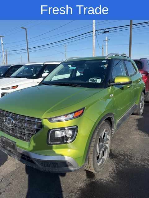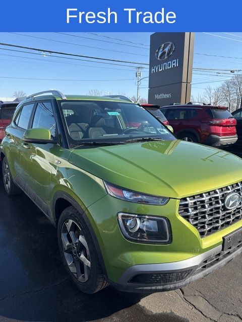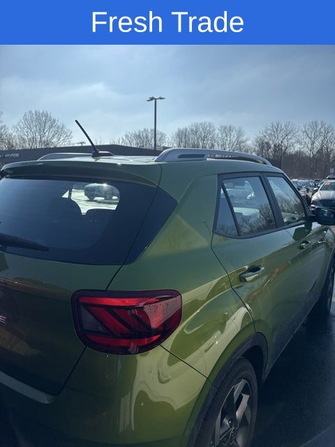 Green Apple 2023 Hyundai Venue SEL FWD CVT I4 4-Wheel Disc Brakes, 6 Speakers, 6.052 Axle Ratio, 6.5J x 17" Alloy Wheels, ABS brakes, Air Conditioning, Alloy wheels, AM/FM radio, Apple CarPlay & Android Auto, Auto High-beam Headlights, Automatic temperature control, Brake assist, Bumpers: body-color, Cargo Net, Cargo Tray, Carpeted Floor Mats, Cloth Seat Trim, Delay-off headlights, Driver door bin, Driver vanity mirror, Dual front impact airbags, Dual front side impact airbags, Electronic Stability Control, Front anti-roll bar, Front Bucket Seats, Front Center Armrest, Front reading lights, Front wheel independent suspension, Fully automatic headlights, Illuminated entry, Leather Shift Knob, Leather steering wheel, Low tire pressure warning, Mudguards, Occupant sensing airbag, Option Group 01, Outside temperature display, Overhead airbag, Overhead console, Panic alarm, Passenger door bin, Passenger vanity mirror, Power door mirrors, Power moonroof, Power steering, Power windows, Radio: AM/FM/HD Display Audio, Rear Seat Cup Holder, Rear window defroster, Rear window wiper, Remote keyless entry, Roof rack: rails only, Security system, Speed control, Speed-sensing steering, Split folding rear seat, Spoiler, Steering wheel mounted audio controls, Tachometer, Telescoping steering wheel, Tilt steering wheel, Traction control, Trip computer, Variably intermittent wipers.