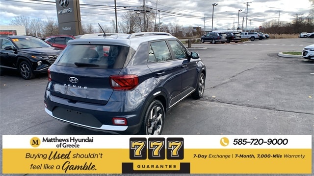 Denim w/White Roof 2024 Hyundai Venue Limited FWD CVT I4 4-Wheel Disc Brakes, 6 Speakers, 6.483 Axle Ratio, 6.5J x 17" Alloy Wheels, ABS brakes, Air Conditioning, Alloy wheels, AM/FM radio: SiriusXM, Apple CarPlay & Android Auto, Auto High-beam Headlights, Automatic temperature control, Brake assist, Bumpers: body-color, Cargo Tray, Carpeted Floor Mats, Cloth & Leatherette Seat Trim, Delay-off headlights, Driver door bin, Driver vanity mirror, Dual front impact airbags, Dual front side impact airbags, Electronic Stability Control, Emergency communication system, Front anti-roll bar, Front Bucket Seats, Front Center Armrest, Front reading lights, Front wheel independent suspension, Fully automatic headlights, Heated door mirrors, Heated Front Bucket Seats, Heated front seats, Illuminated entry, Leather Shift Knob, Leather steering wheel, Low tire pressure warning, Navigation System, Occupant sensing airbag, Option Group 01, Outside temperature display, Overhead airbag, Overhead console, Panic alarm, Passenger door bin, Passenger vanity mirror, Power door mirrors, Power steering, Power windows, Radio: AM/FM/HD/SiriusXM w/Navigation System, Rear Bumper Applique, Rear Seat Cup Holder, Rear window defroster, Rear window wiper, Remote keyless entry, Roof rack: rails only, Security system, Speed control, Speed-sensing steering, Split folding rear seat, Spoiler, Steering wheel mounted audio controls, Tachometer, Telescoping steering wheel, Tilt steering wheel, Traction control, Trip computer, Variably intermittent wipers, Wheel Locks.