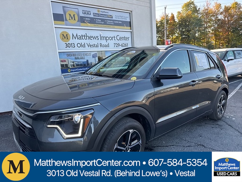 Matthews Import Center promises each customer a thorough and confident 120-point inspection on our used inventory guaranteeing a relaxing and peace-of-mind experience. We are located behind Lowes in Vestal NY. Or call us at (607) 729 - 6261Matthews Import Center3013 Old Vestal RoadVestal NY 13850. Graphite Gray 2024 Kia EX Niro FWD 6-Speed Automatic 1.6L I4 DGI Hybrid DOHC 16V LEV3-SULEV30Odometer is 7021 miles below market average! 53/54 City/Highway MPG