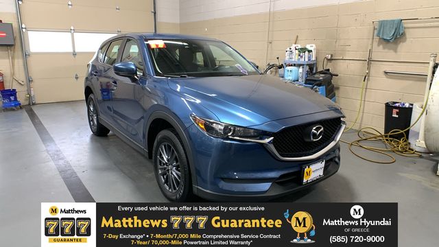 Eternal Blue Mica 2019 Mazda CX-5 Sport AWD 6-Speed Automatic SKYACTIV® 2.5L 4-Cylinder DOHC 16V 4 Speakers, 4-Wheel Disc Brakes, 4.624 Axle Ratio, ABS brakes, Air Conditioning, Alloy wheels, AM/FM radio, Brake assist, Bumpers: body-color, Cloth Seat Trim, Delay-off headlights, Driver door bin, Driver vanity mirror, Dual front impact airbags, Dual front side impact airbags, Electronic Stability Control, Emergency communication system, Exterior Parking Camera Rear, Four wheel independent suspension, Front anti-roll bar, Front Bucket Seats, Front Center Armrest, Front reading lights, Illuminated entry, Leather Shift Knob, Low tire pressure warning, Occupant sensing airbag, Outside temperature display, Overhead airbag, Overhead console, Panic alarm, Passenger door bin, Passenger vanity mirror, Power door mirrors, Power steering, Power windows, Radio data system, Radio: AM/FM/HD Audio System, Rear anti-roll bar, Rear reading lights, Rear window defroster, Rear window wiper, Remote keyless entry, Speed control, Speed-sensing steering, Split folding rear seat, Spoiler, Sport Front Seats, Steering wheel mounted audio controls, Tachometer, Telescoping steering wheel, Tilt steering wheel, Traction control, Trip computer, Turn signal indicator mirrors, Variably intermittent wipers, Wheel Locks w/21mm Lug, Wheels: 17" x 7J Gray Metallic Alloy.