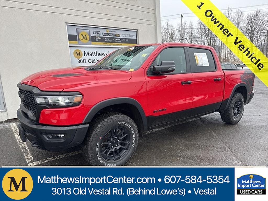 Matthews Import Center promises each customer a thorough and confident 120-point inspection on our used inventory guaranteeing a relaxing and peace-of-mind experience. We are located behind Lowes in Vestal NY. Or call us at (607) 729 - 6261Matthews Import Center3013 Old Vestal RoadVestal NY 13850. Flame Red Clearcoat 2025 Ram Rebel 1500 4WD 8-Speed Automatic 3.0L I6Awards: * Motor Trend Automobiles of the year